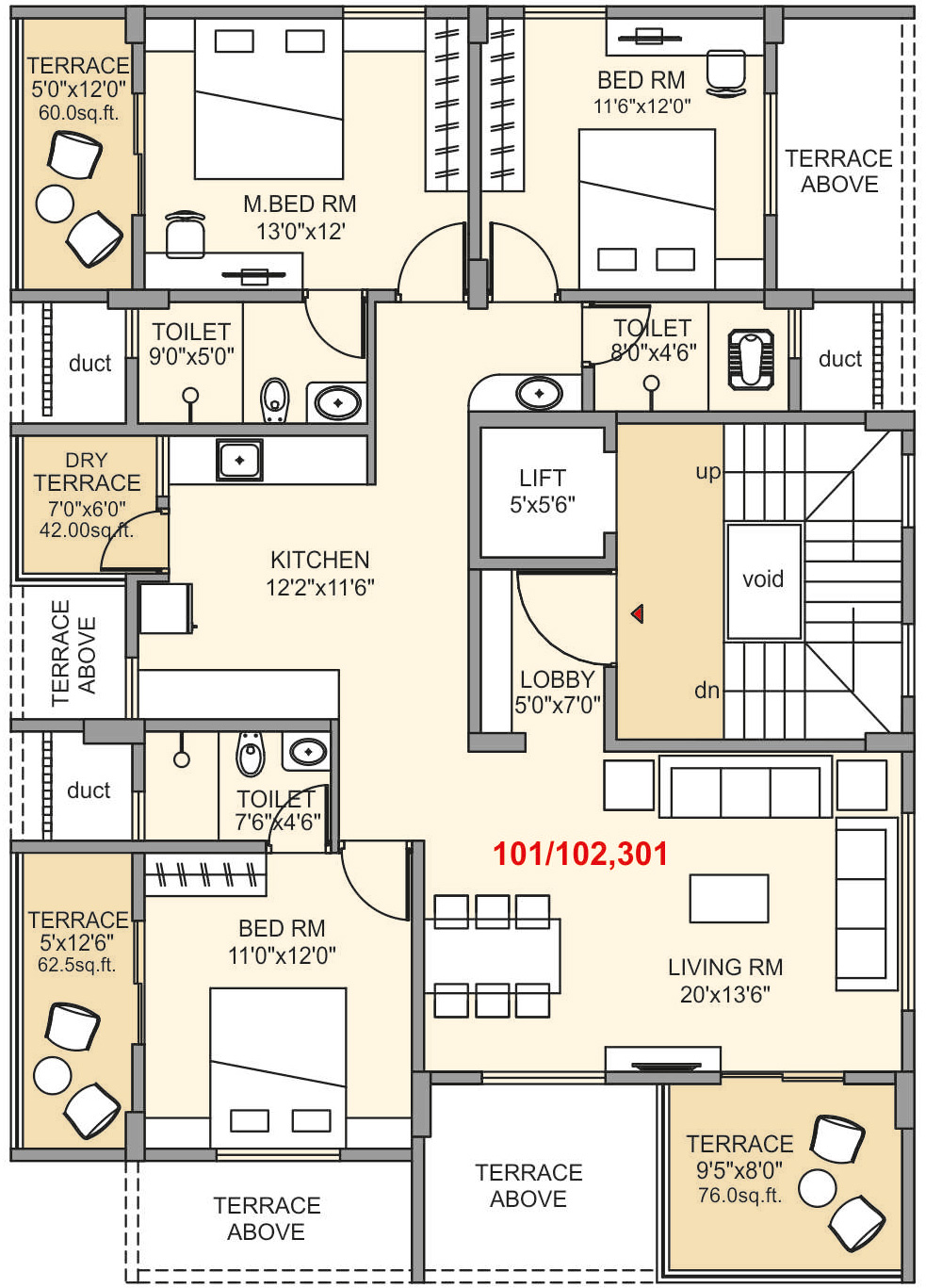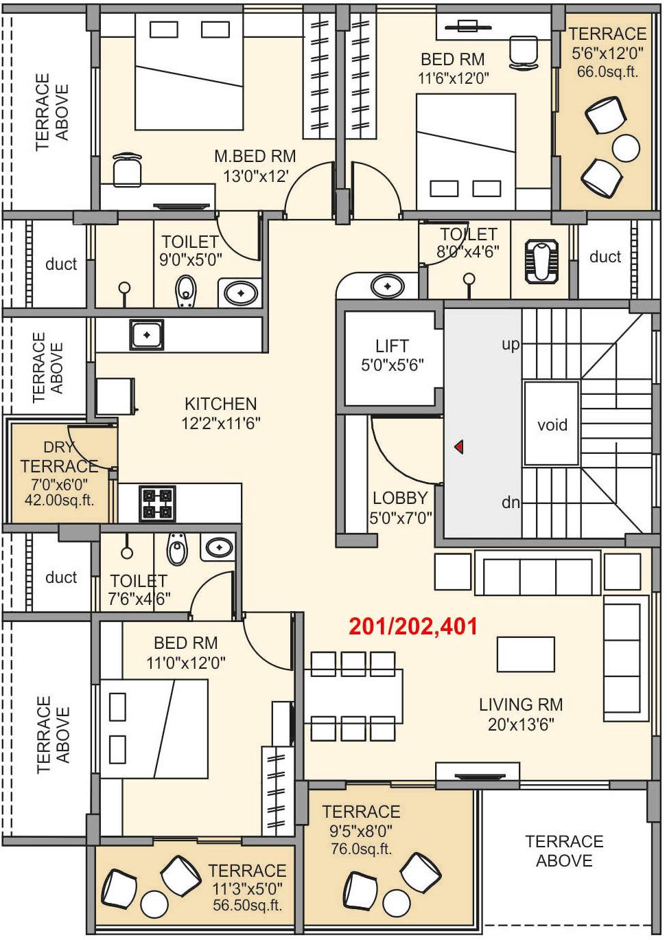 Nirvana Dreams is a concept for the people who wish to own a Bungalow but minus the negatives involved in Security and Maintenance with only One Flat per Floor. The Flats are spacious with Three Terraces to each flat and Four side open with ample Sunlight and Breeze flowing in the rooms. Situated in the most Prime Location of Baner near Ganraj Karyalay and 100 feet Baner Balewadi Road.